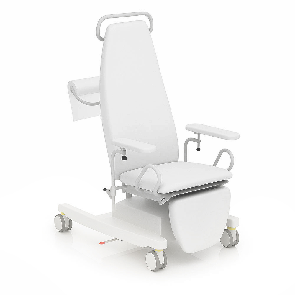 Der Blutentnahmestuhl von Novak M ist die perfekte Wahl für kleinere diagnostische Eingriffe im Labor und bietet dabei maximale Stabilität und Komfort