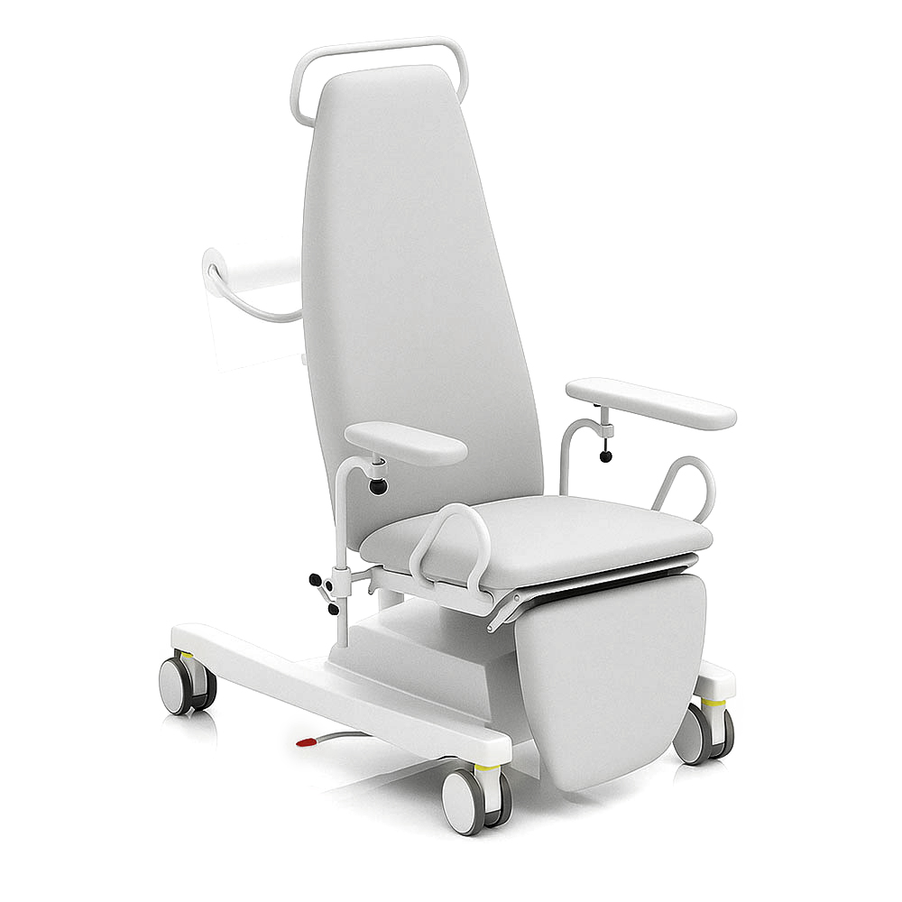 Mit seiner schmalen Form und seinen Details braucht er nur wenig Platz. Seine niedrige Position und die Haltegriffe ermöglichen einen einfachen Zugang und Sicherheit für Ihre Patienten. Rücken- und Fussteil sind hydraulisch verstellbar (Synchronverstellung). Im Notfall können Sie den Stuhl einfach durch Betätigen eines S.O.S. Hebels in die Trendelenburg-Position bringen. Der Blutentnahmestuhl N ist mit zentral blockierbaren Rollen ausgestattet. Nahtlose Polsterung und hochwertiges wasserabweisendes und feuerfestes Kunstleder sorgen für eine einfache Reinigung. Da sie resistent gegen Blut, Urin und Desinfektionsmittel ist, können Sie für die richtige Hygiene sorgen. Der Bezugsstoff für Ihren Blutentnahmestuhl N ist in mehr als 30 Farben erhältlich, sodass Sie diejenige auswählen können, die am besten zu Ihrem Labor passt.