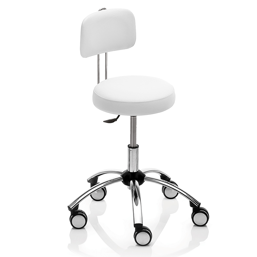 Der Therapiehocker ist ein praktischer Begleiter, der Ihre Praxis ergänzt. Er ermöglicht Ihnen, in einer bequemen und entspannten Position zu arbeiten und hilft Ihnen, eine gute Körperhaltung beizubehalten.Der Hocker ist voll drehbar und mit oder ohne Rückenlehne erhältlich. Seine Höhe kann leicht verstellt werden, um die richtige Position für Ihre Körpergrösse einzustellen Der sternförmige Unterbau ermöglicht es Ihnen, näher an den Patienten heranzurücken, während der runde Unterbau Platz zum Ausruhen der Füsse bietet. Die fünf Gummirollen sind leichtgängig und für alle Bodenarten geeignet, sodass Sie im Handumdrehen vom Schreibtisch zum Patienten gelangen. Gummifüsse anstelle von Rollen sind ebenfalls erhältlich.Für die weich gepolsterte Sitzfläche können Sie aus über 30 Kunstlederfarben wählen, sodass er farblich perfekt zu Ihrem Tisch und anderen Geräten in Ihrer Praxis passt.Verstellbare Rückenlehne