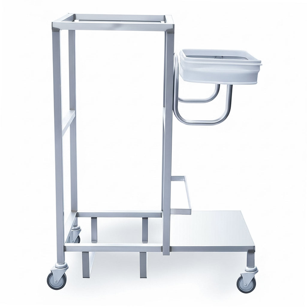 Der Entsorgungswagen überzeugt durch robuste, hygienische Verarbeitung und eine praxisgerechte Ausstattung für die strukturierte Abfalltrennung. Fugenlos verschweisstes Gestell aus geschliffenem, elektropoliertem Vierkantrohr (25 x 25 mm) – langlebig, stabil und leicht zu reinigen. 4 Lenkrollen Ø 75 mm, Edelstahl, elektrisch leitfähig, mit Fadenschutz und Kugellager – leichtgängig und wendig im täglichen Einsatz.