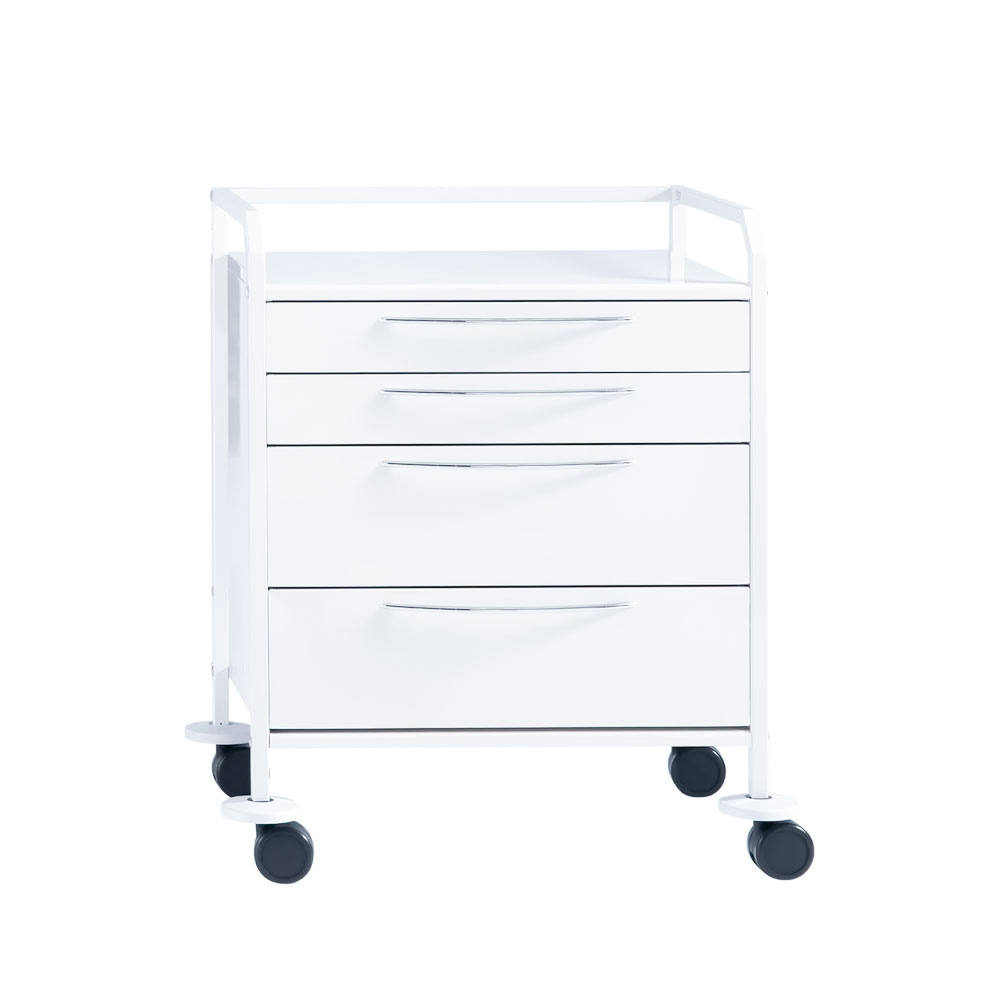 Unser Beistelltisch HYGIEN-O-STAR besticht mit einem abgekantetem Gestell mit einer Tischplatte aus Stahl und einer Gesamt-Tragkraft von 80 kg, während jede einzelne Schublade in sich mit 15 kg beladen werden kann. Die hohe Anzahl an wählbaren Schubladen in Kombination mit den drei verschiedenen Breiten machen diesen Gerätetisch ebenso zu unserem Selection-Produkt wie der Selbsteinzug der Schubladen und die kugelgelagerten Rollen. Erweiterbar durch praktisches Zubehör wie Schubladeneinsätze und Anti-Rutschmatten sorgt der HYGIEN-O-STAR für Ordnung im Alltag. Optional können zusätzlich elektrisch leitfähige Rollen gewählt werden.